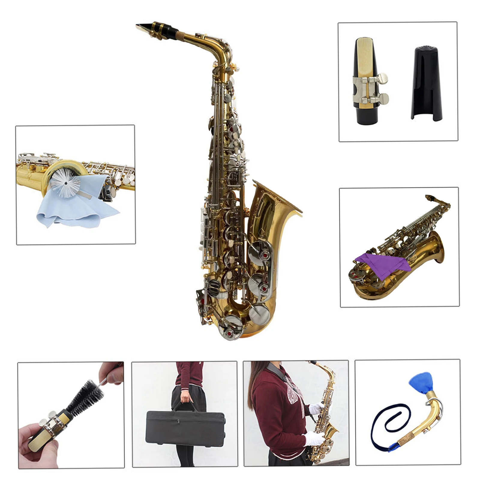 Das E-Flat-Albsaxophon aus Messing ist tief und satter Klang.Natürliche weiße Muschelknöpfe für High-Level-Test!Perfekt für Studenten, Lehrer, Musiker und Musikliebhaber.