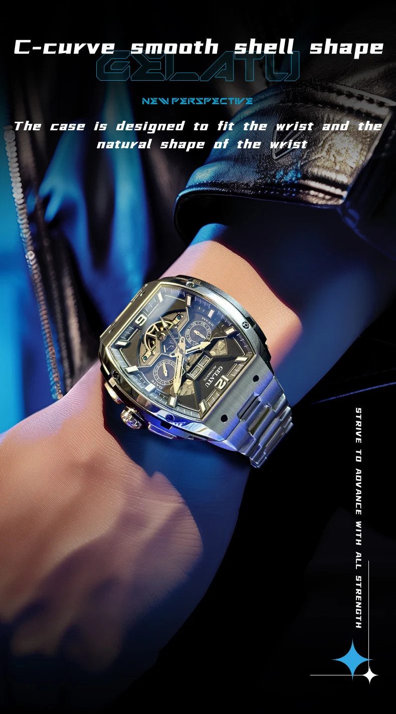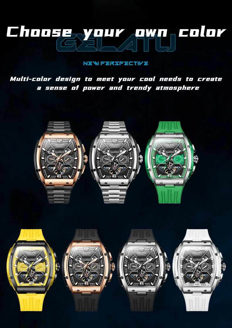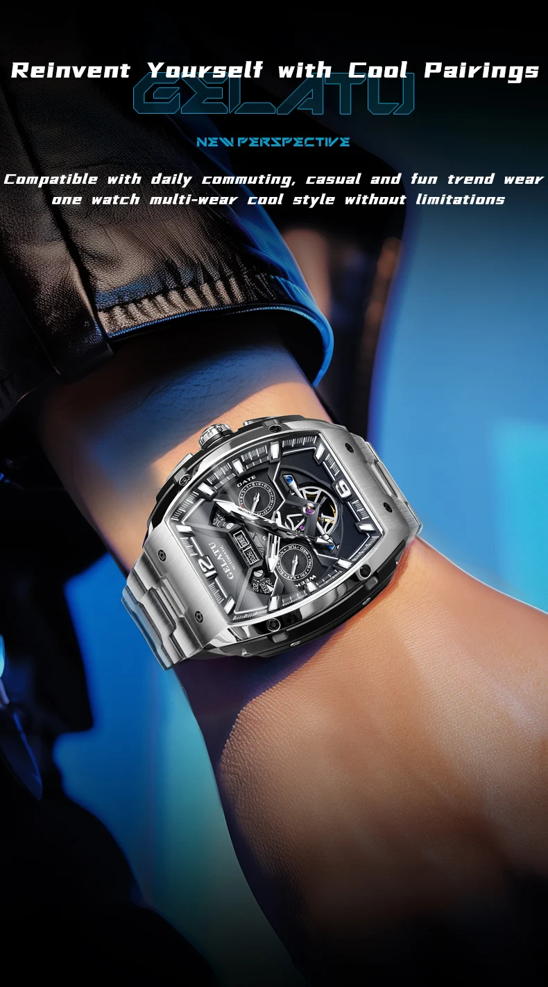 GELATU 6013 Herren Luxus Hohl Automatische Mechanische Originaluhr Neue Skelett Wasserdichte Multifunktionale Marke Herrenuhr