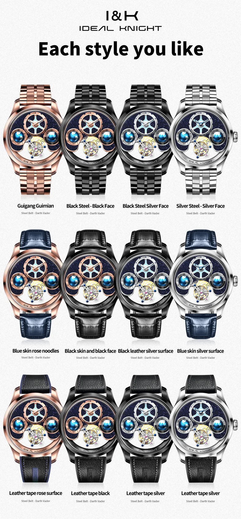 Ideale Ritter 6808 Tourbillon Uhren für Männer Blue Earth Serie High-End-Luxusmarke Skelett automatische mechanische Armbanduhren