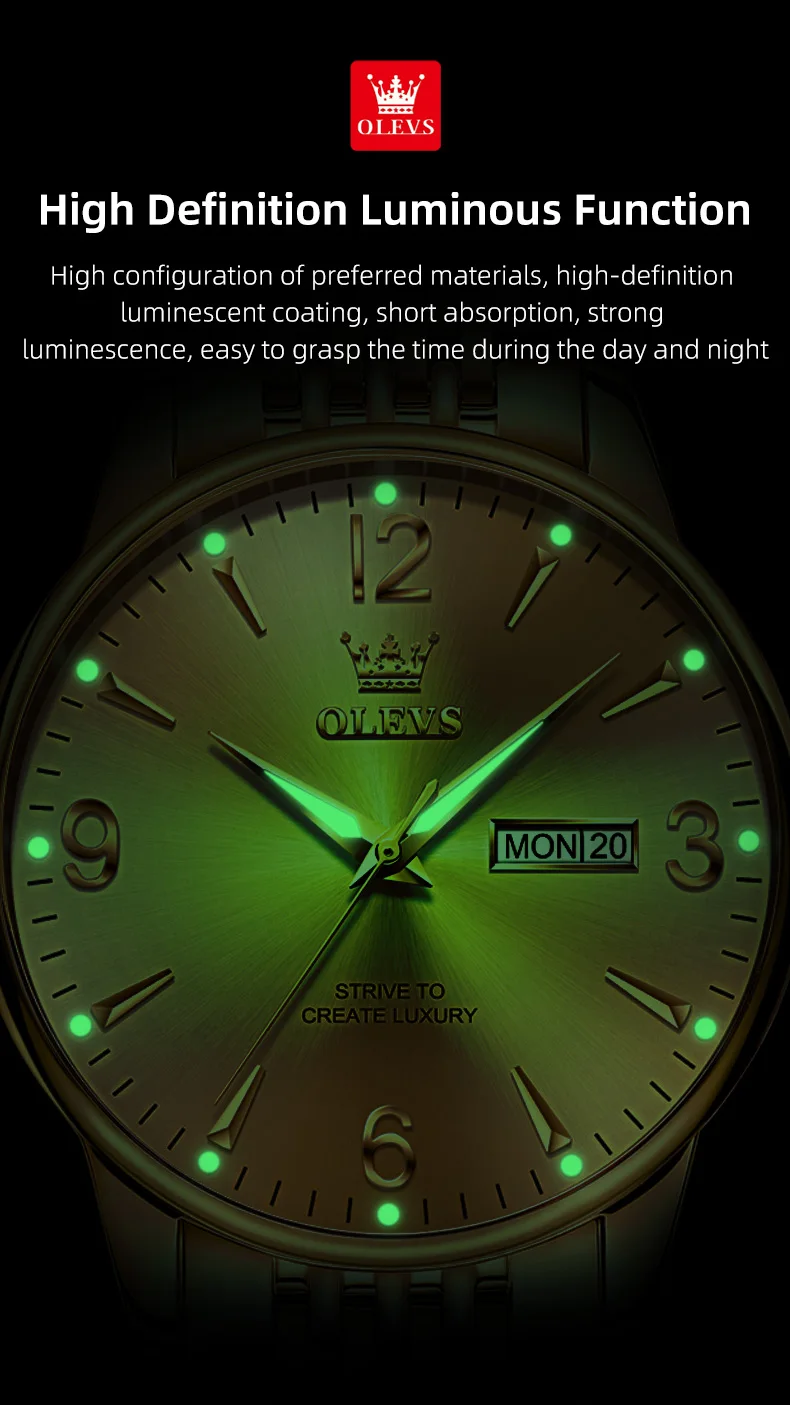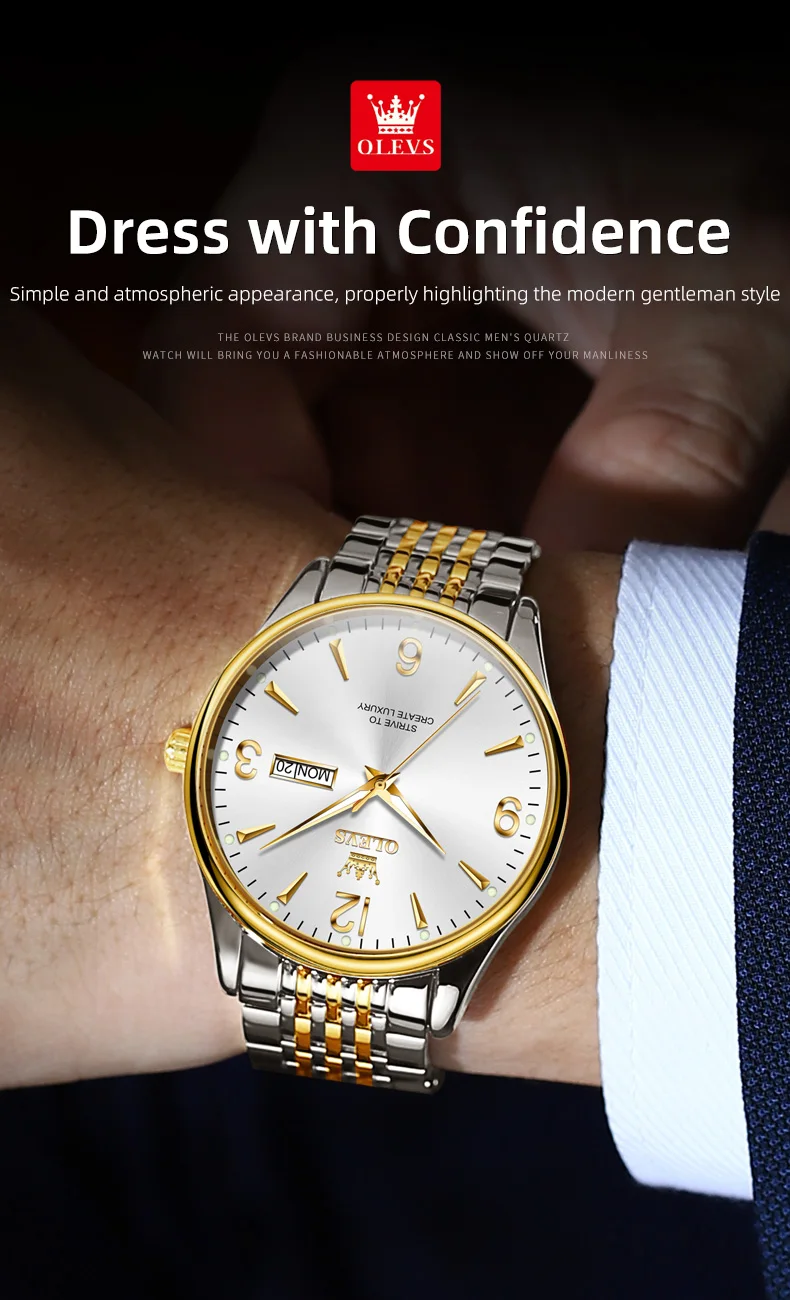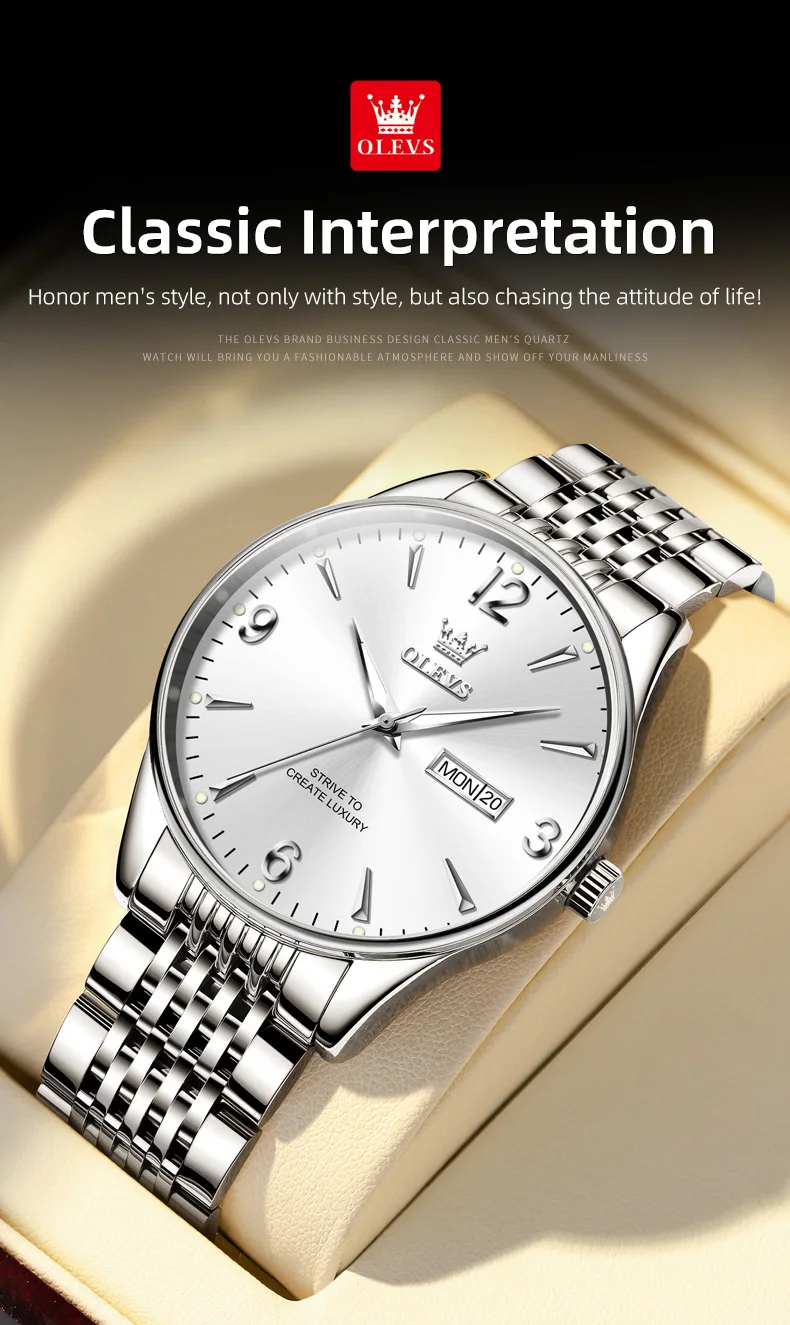 OLEVS 2928 Herrenuhr Original Marke Wasserdicht Leucht Quarz Armbanduhr Dual Kalender Display Uhr Für Männer Freebie Reloj