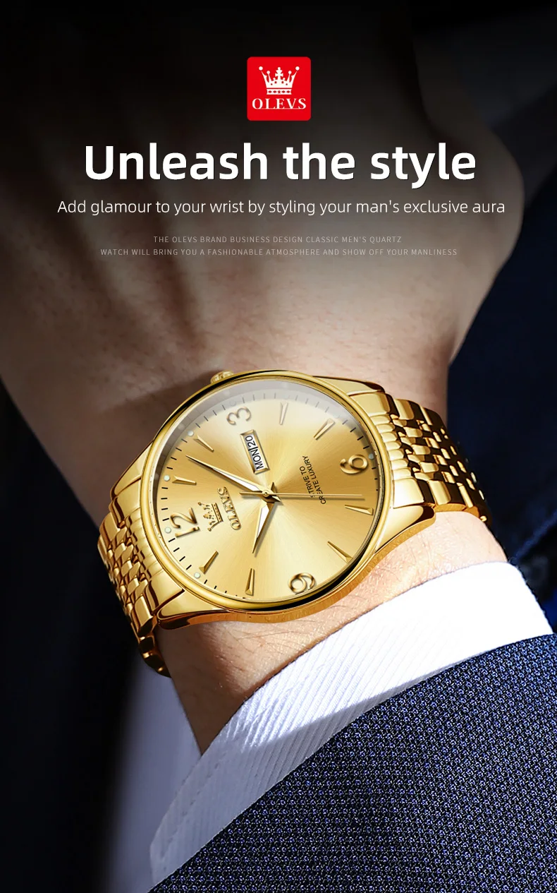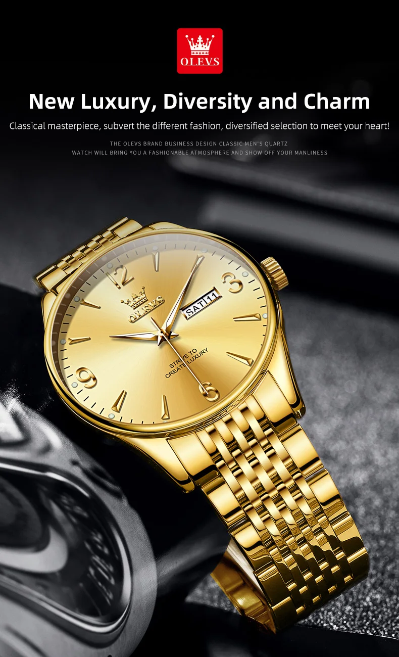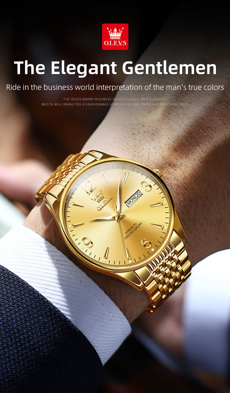 OLEVS 2928 Herrenuhr Original Marke Wasserdicht Leucht Quarz Armbanduhr Dual Kalender Display Uhr Für Männer Freebie Reloj