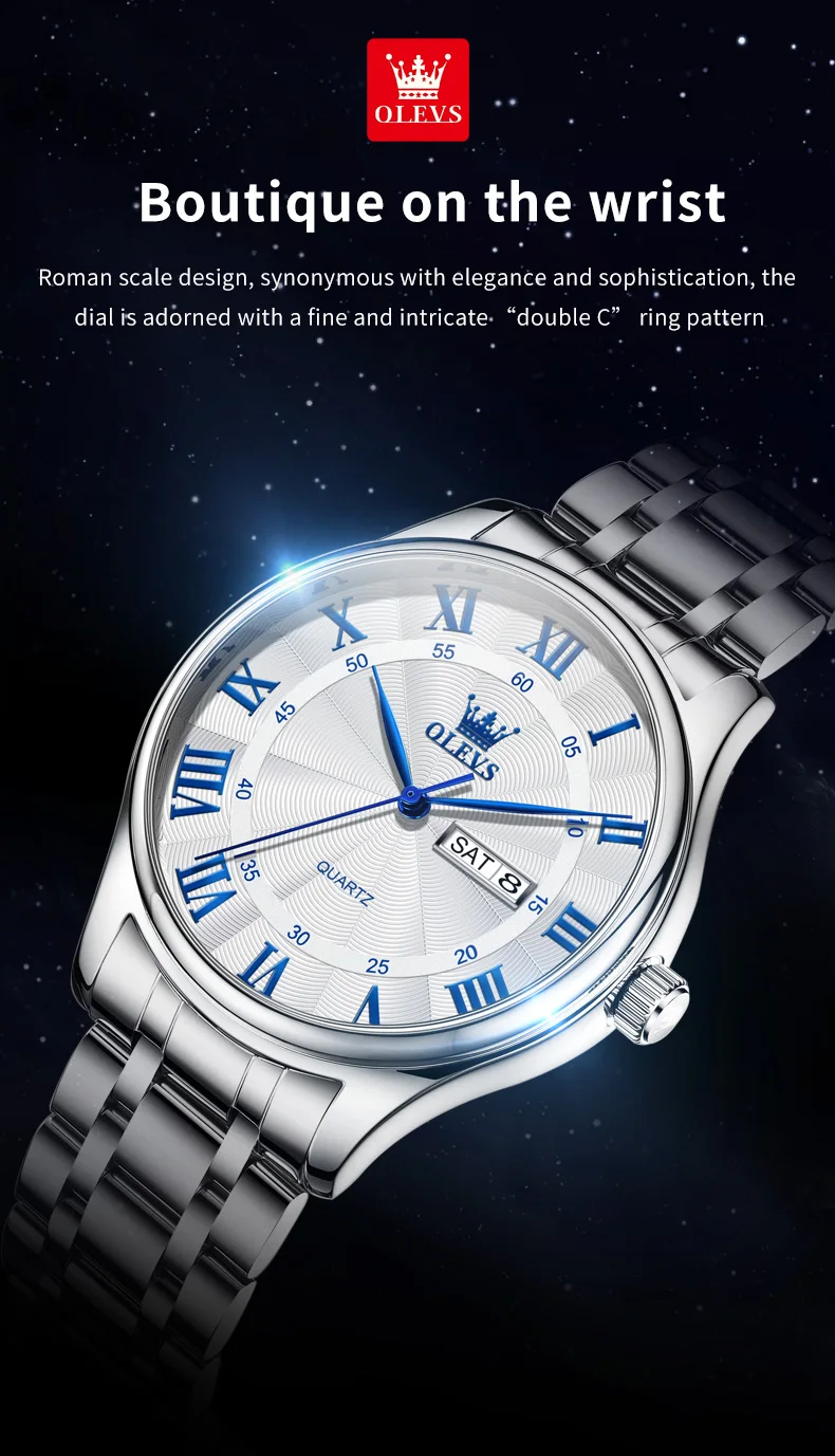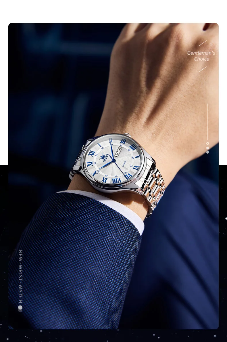 OLEVS 3663 Herrenuhr, klassische Original-Marken-Quarzuhr, wasserdicht, leuchtende Uhren für Männer, Dual-Kalender-Display, Geschenkbox