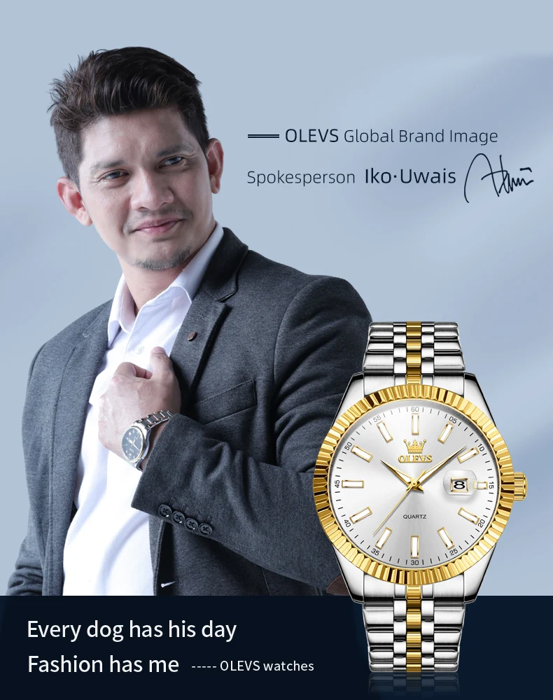 OLEVS Herrenuhren, luxuriös, klassisch, Datumslupe, Original-Quarzuhr für Herren, wasserdicht, Edelstahl, leuchtendes Tagebuch