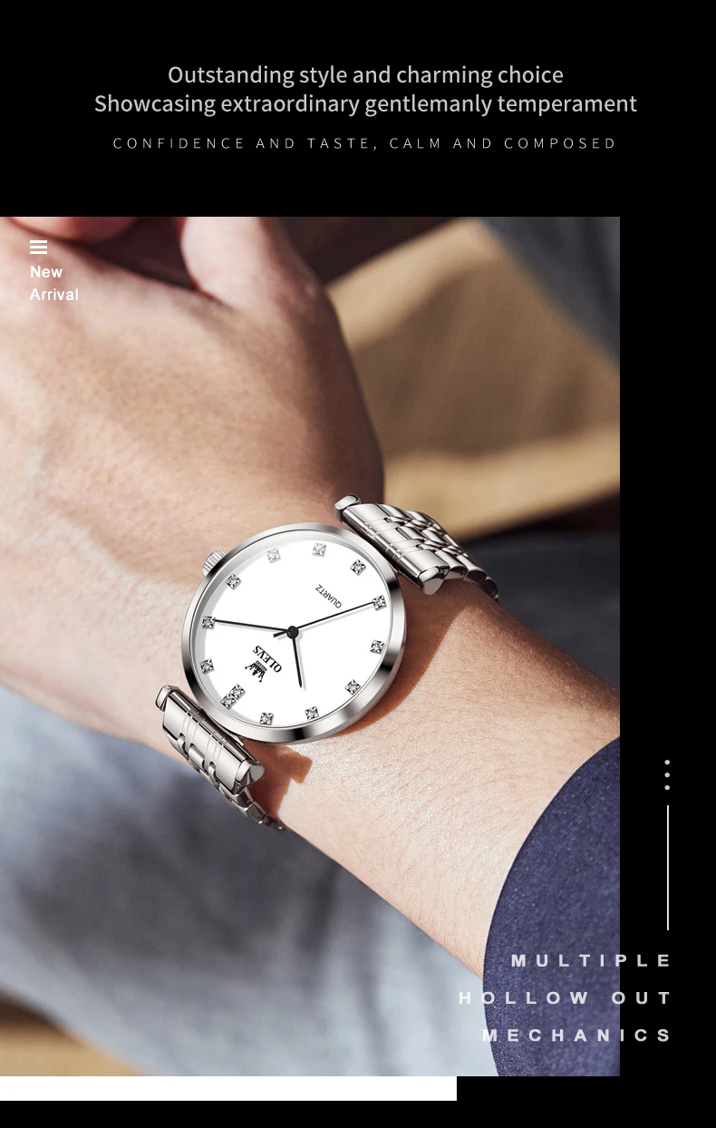 OLEVS Herrenuhren, schlicht, modisch, Original-Quarzuhr für Herren, wasserdicht, Edelstahl, Alltagskleidung, bescheidener Luxus, 5596, Neu