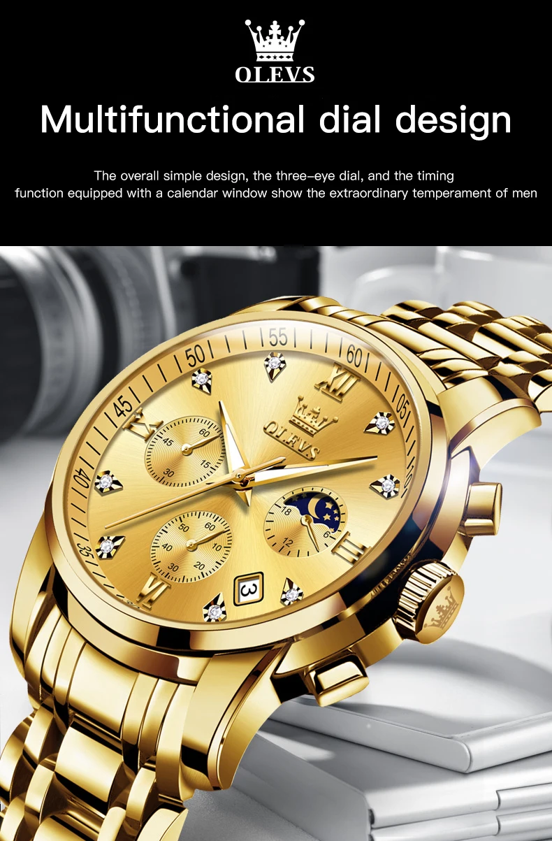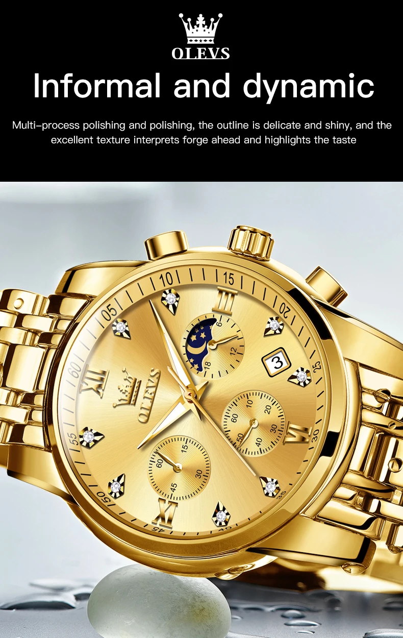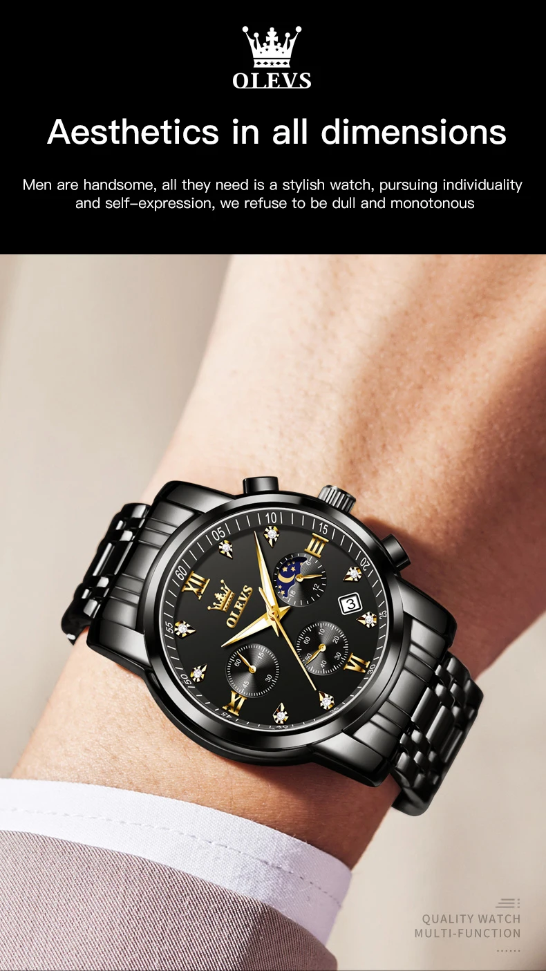 OLEVS Herrenuhren Top-Marke Original Quarzuhr für Mann Chronograph Wasserdicht Leuchtend Modetrend Mondphase Datum