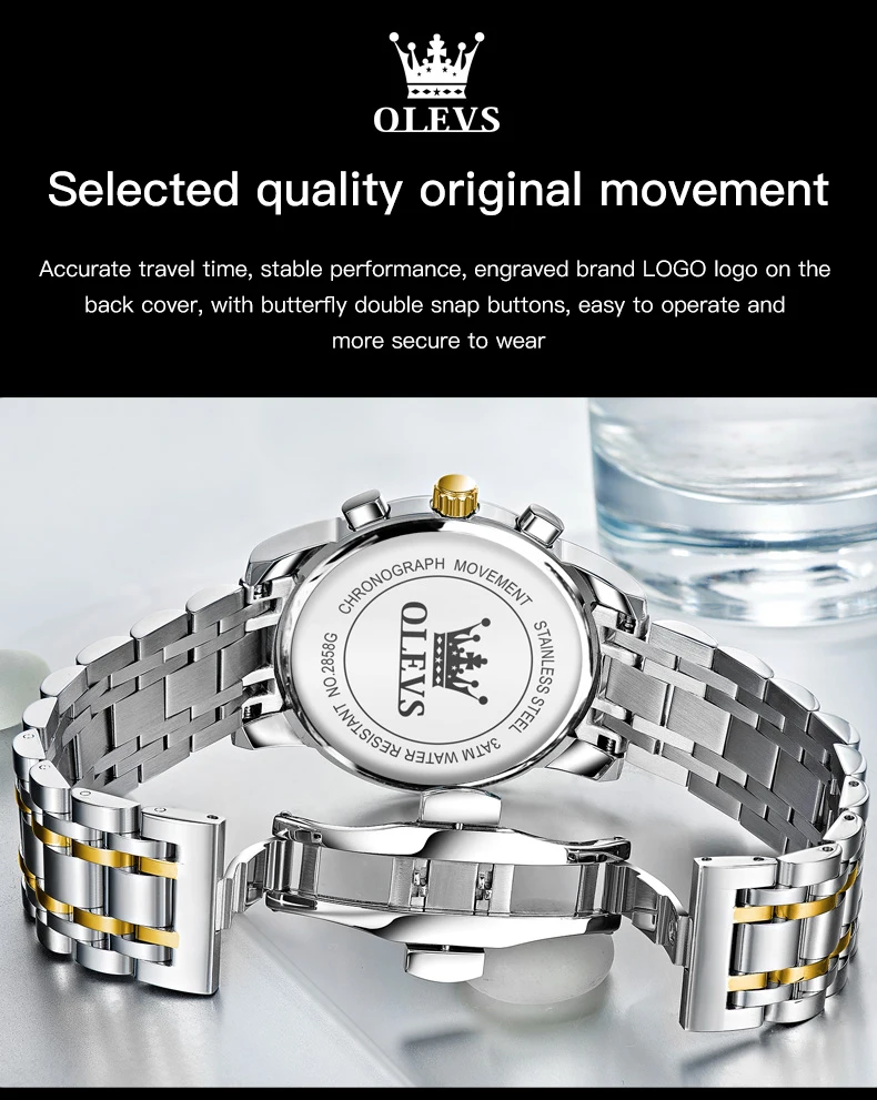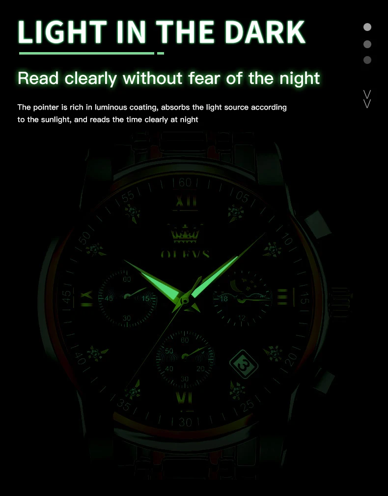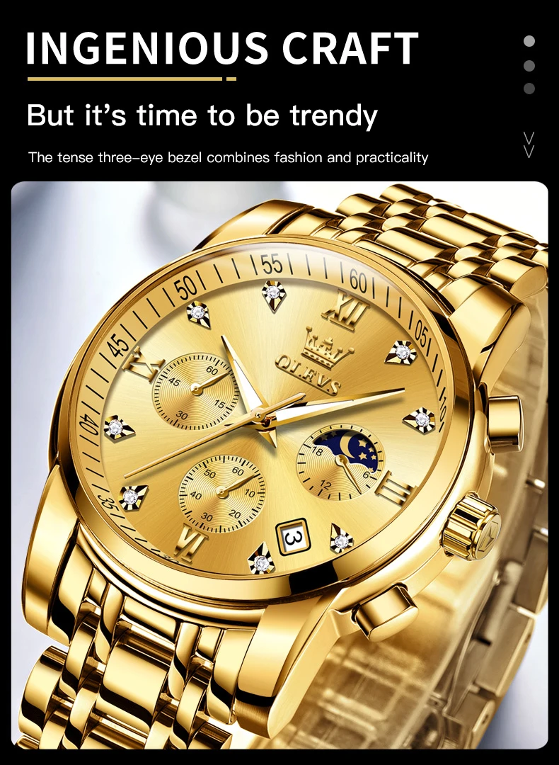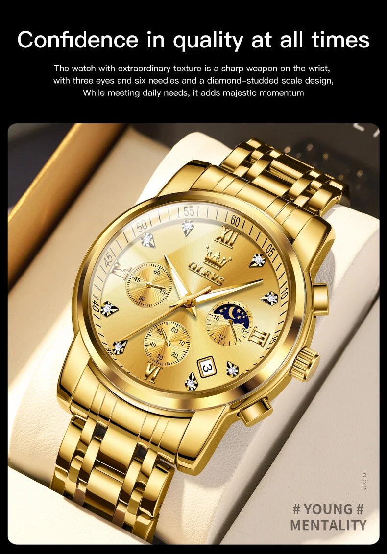 OLEVS Herrenuhren Top-Marke Original Quarzuhr für Mann Chronograph Wasserdicht Leuchtend Modetrend Mondphase Datum