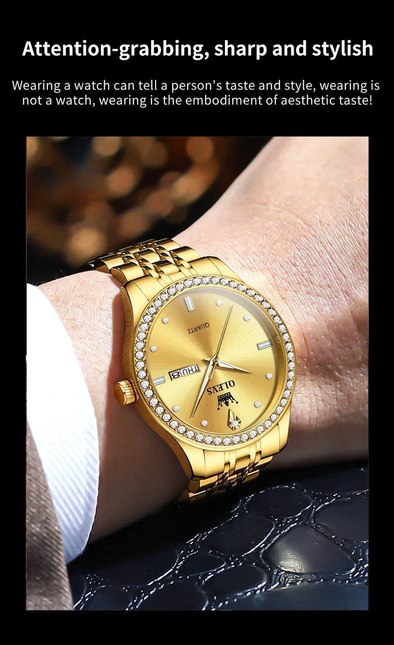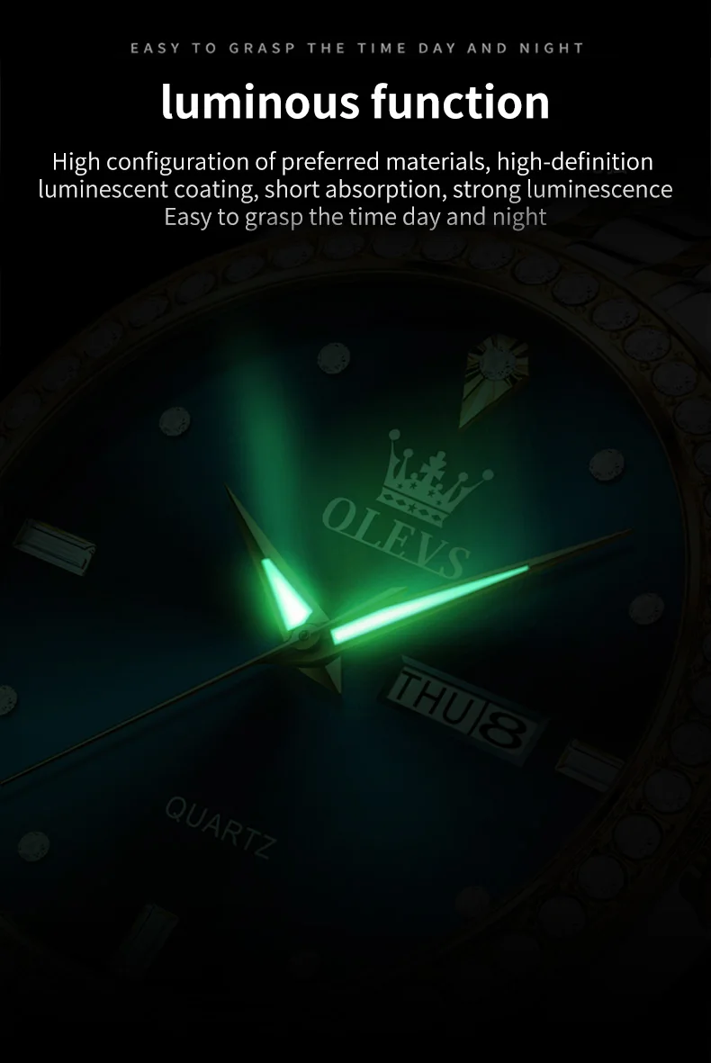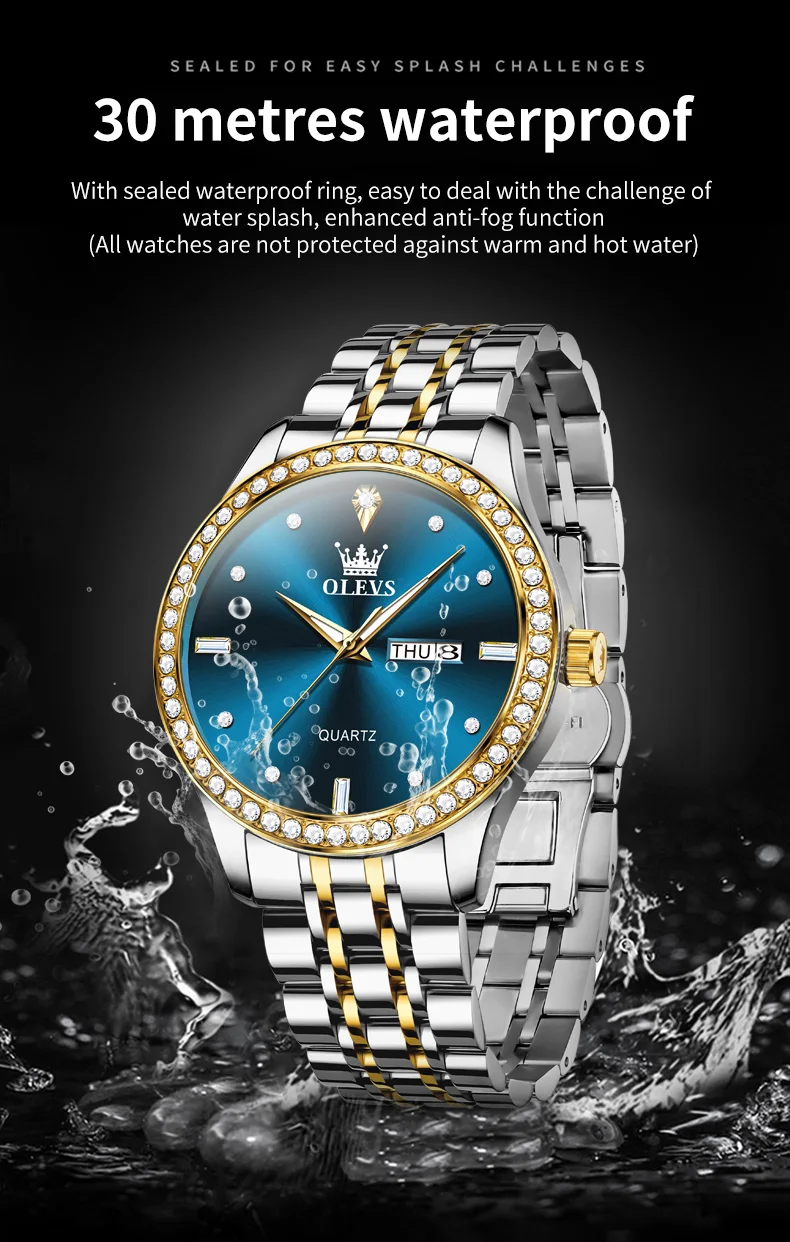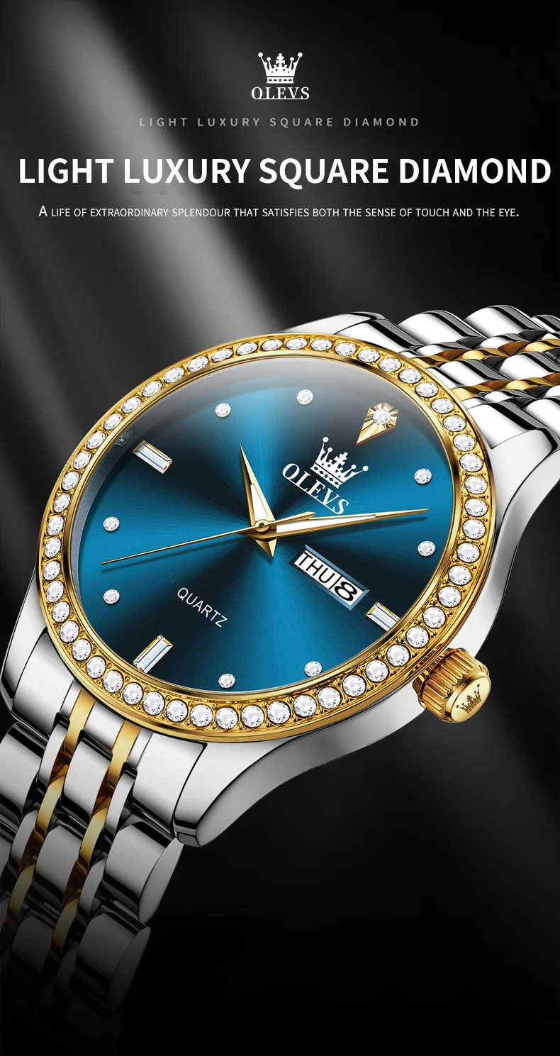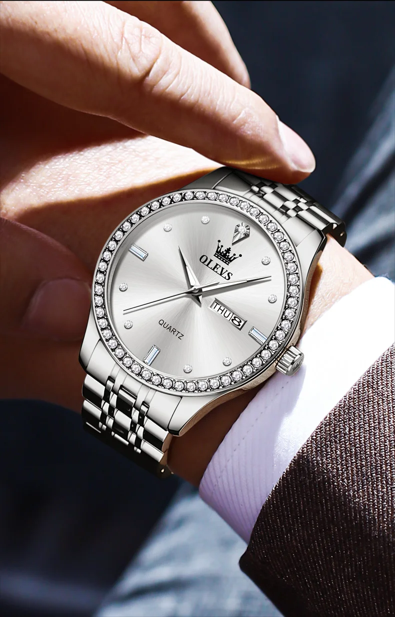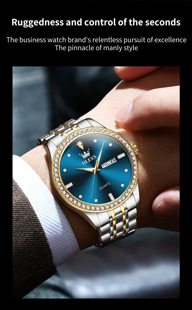 Olevs neue eingelegte Quarzuhr für Männer Edelstahl Datum Woche männliche Armbanduhr wasserdichte leuchtende Quarzuhr für den Menschen