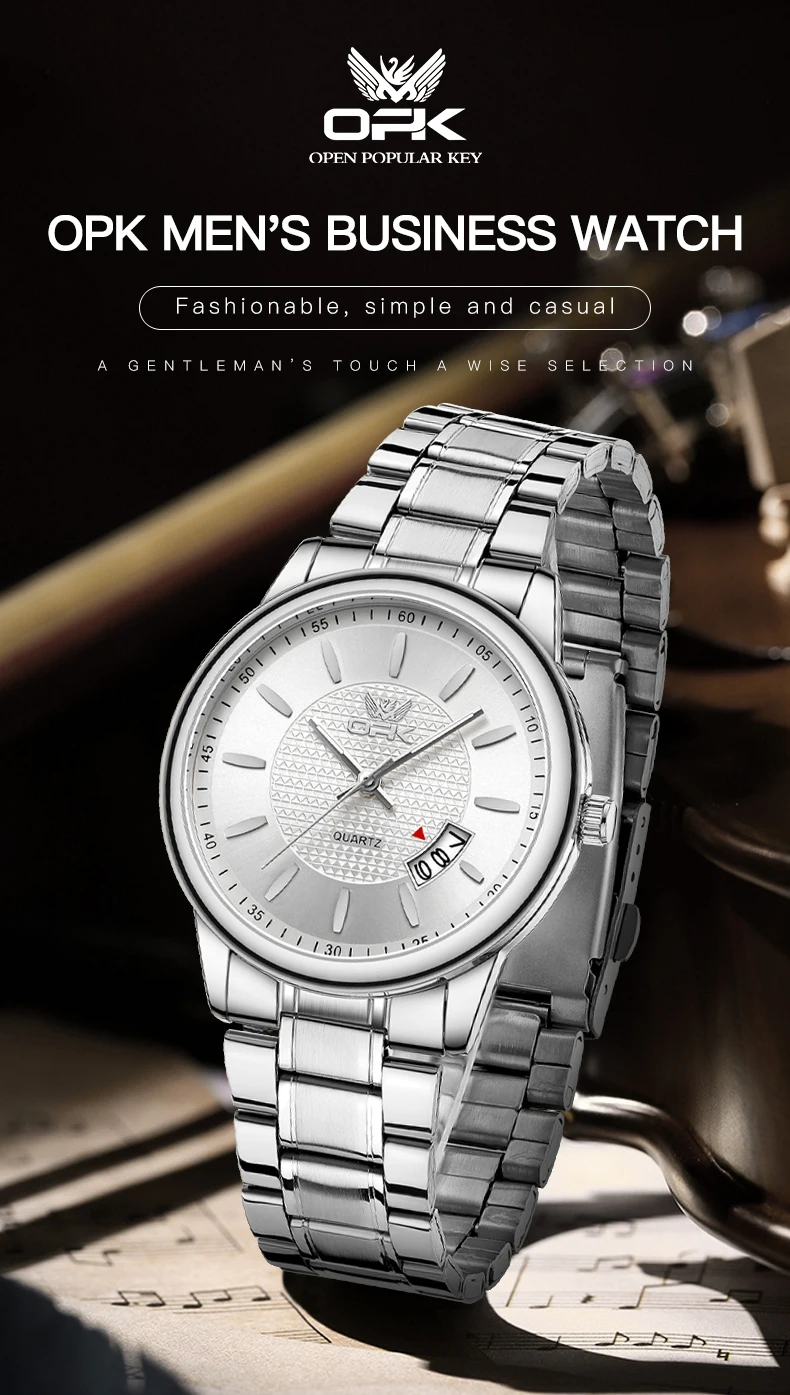 Opk 6028 Herren uhren Luxus klassische Original Quarz Reloj Hombre Edelstahl leuchtende wasserdichte Datums anzeige Uhren