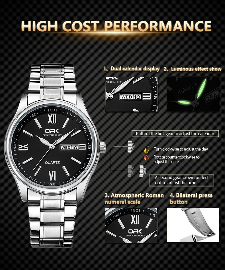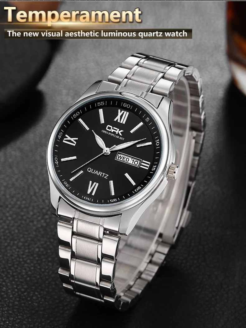 Opk 8123 Herren uhr Mode Original Quarz Armbanduhr wasserdichte Leucht uhren für Herren Dual Kalender Display Reloj Hombre