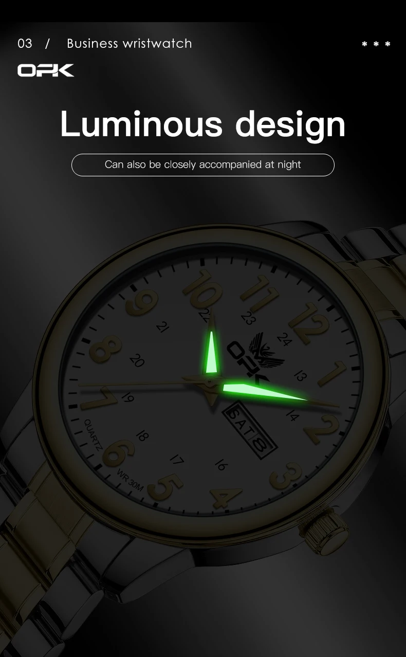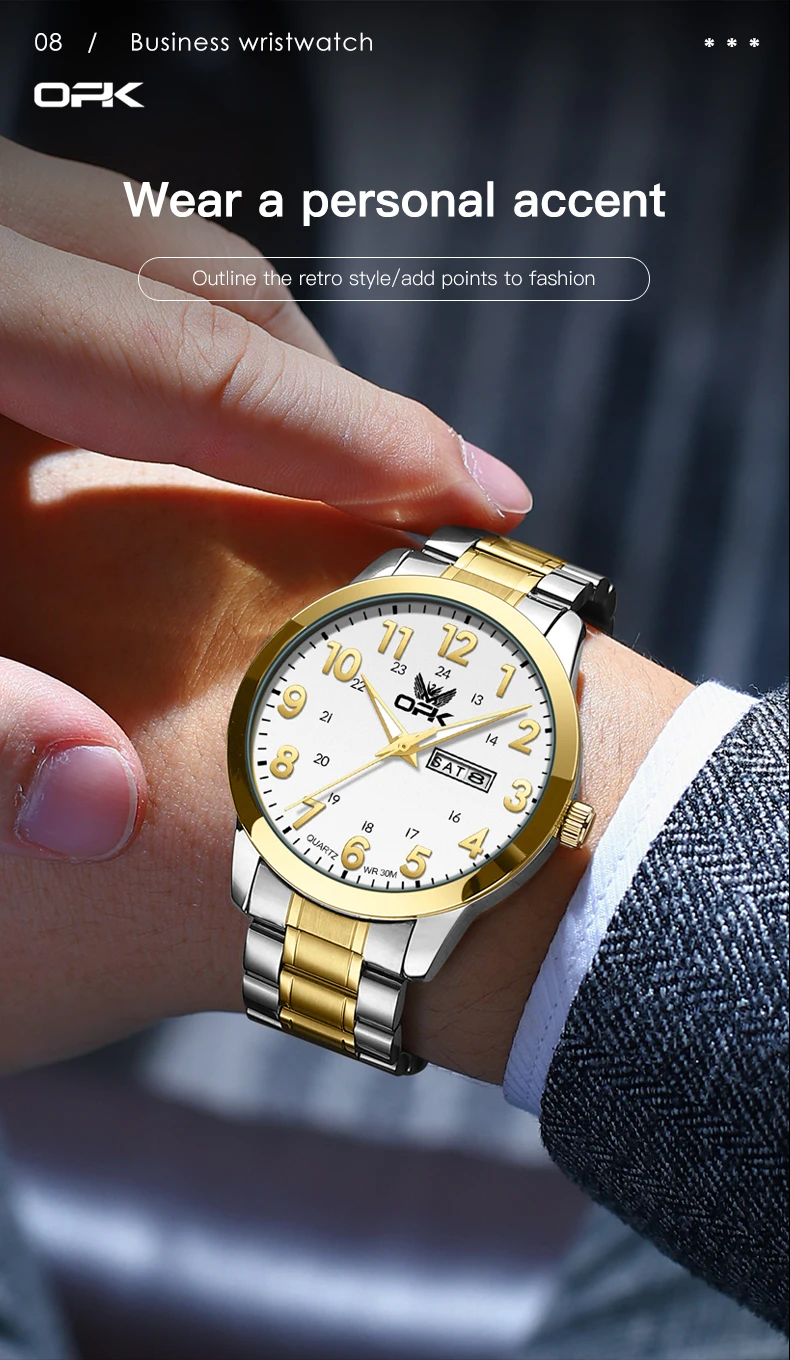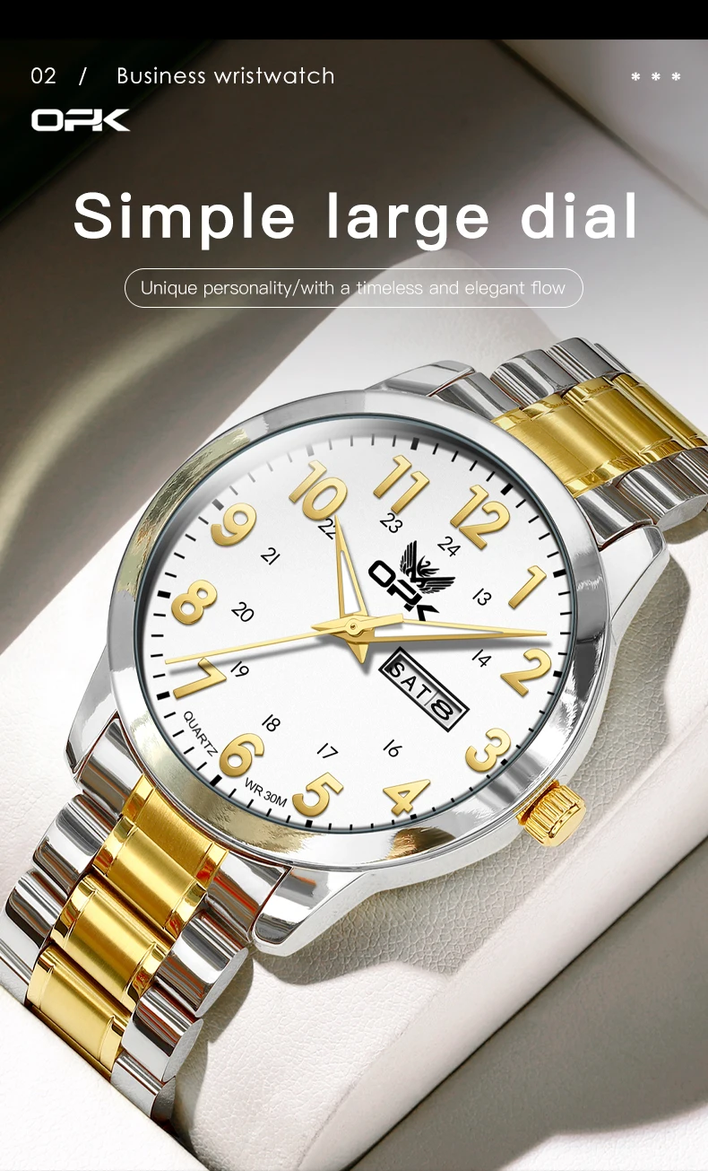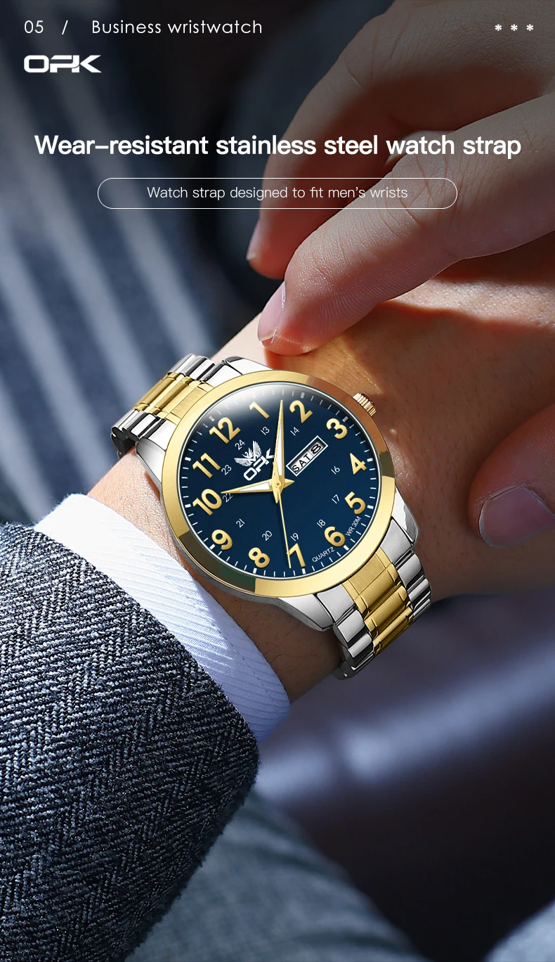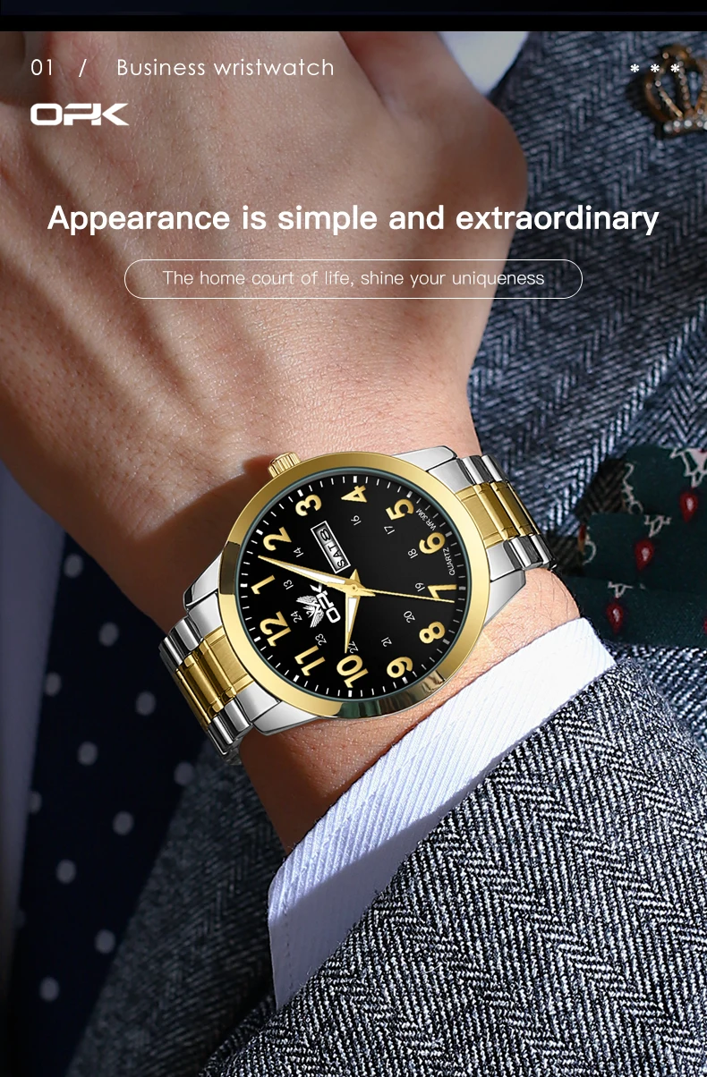 OPK 8176 Uhr für Herren, einfache Original-Quarz-Armbanduhr, wasserdicht, leuchtender Edelstahl, Reloj Hombre, Datums- und Wochenanzeige