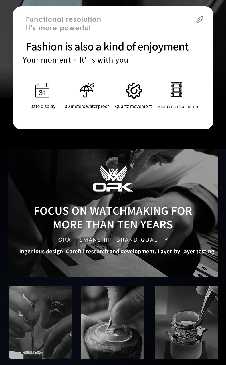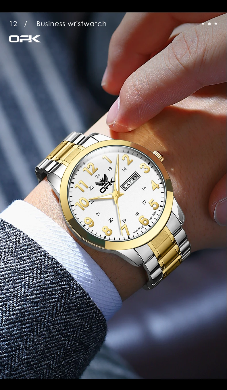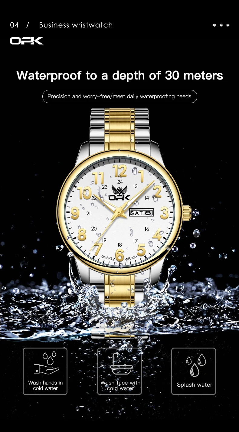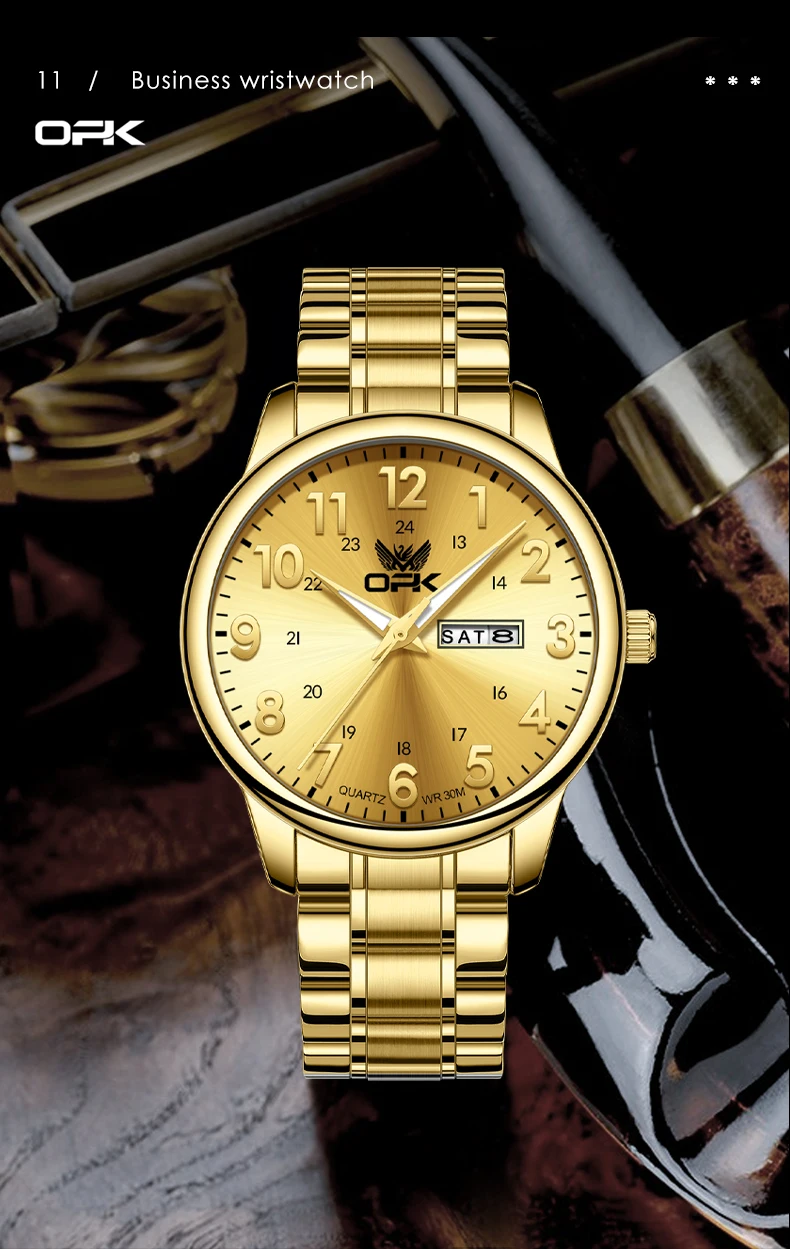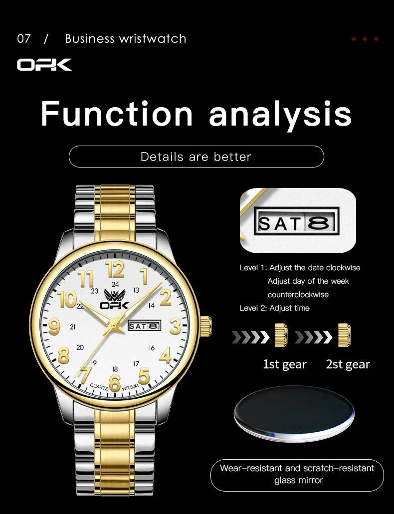 OPK 8176 Uhr für Herren, einfache Original-Quarz-Armbanduhr, wasserdicht, leuchtender Edelstahl, Reloj Hombre, Datums- und Wochenanzeige