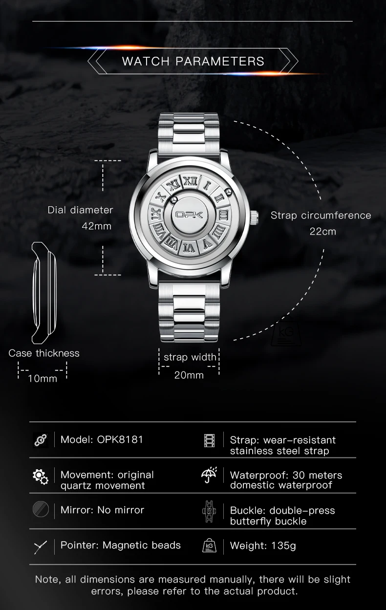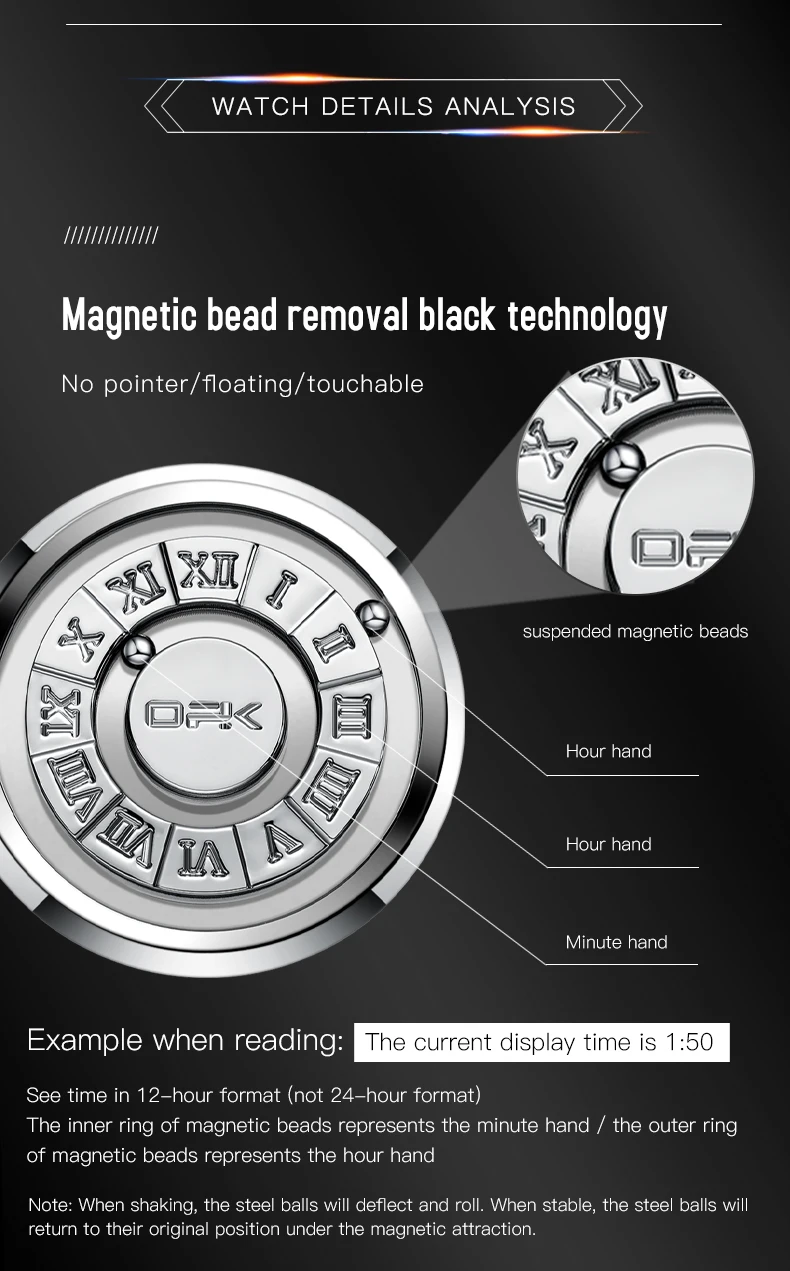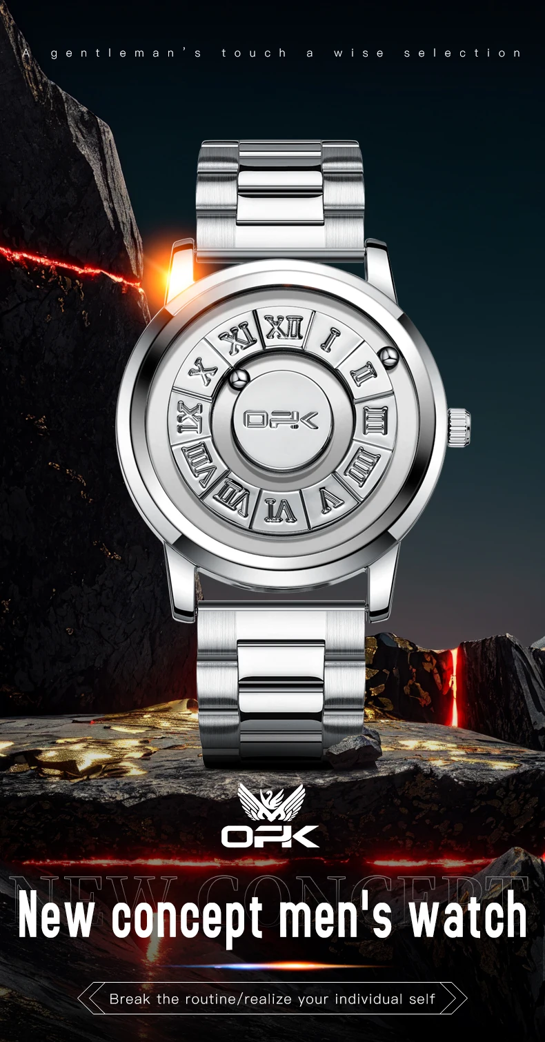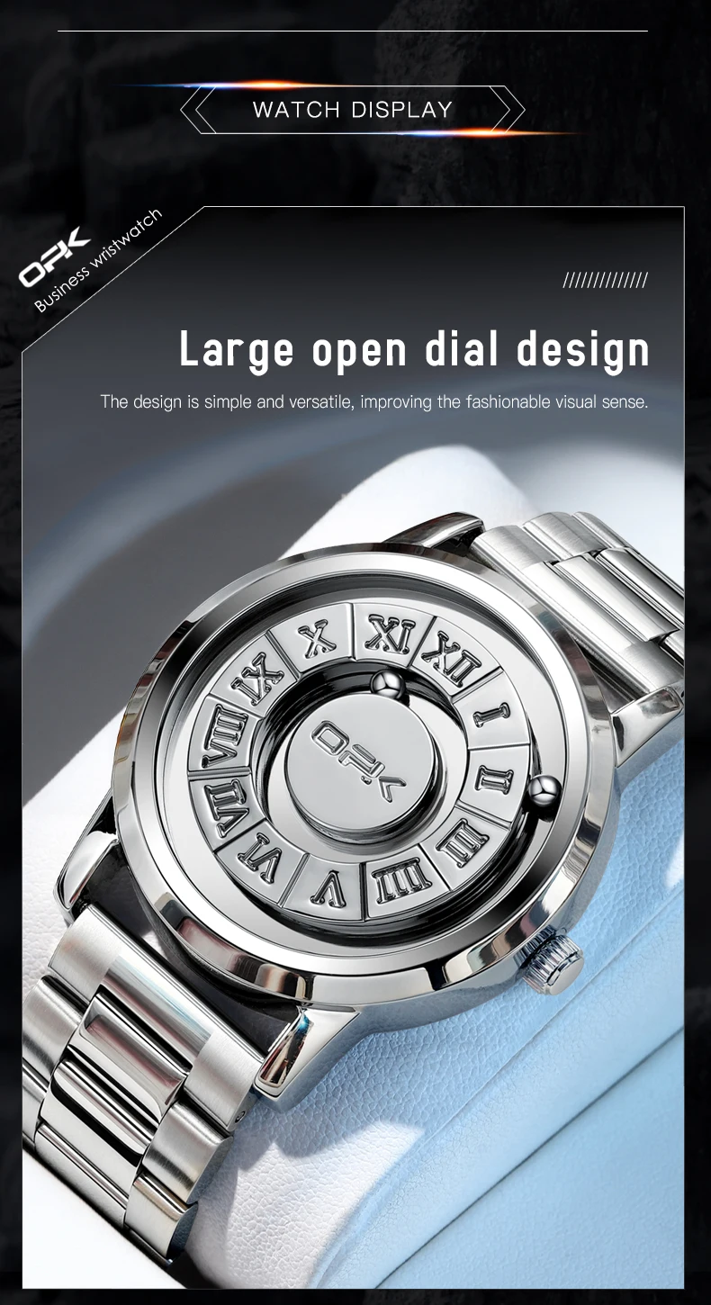 OPK 8181 Herrenuhr Original Marke Edelstahl Quarz Armbanduhr 30 Mt Wasserdicht Kein Zeiger Magnetische Perle Uhren Für Männer