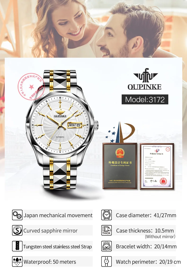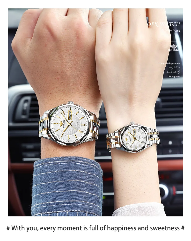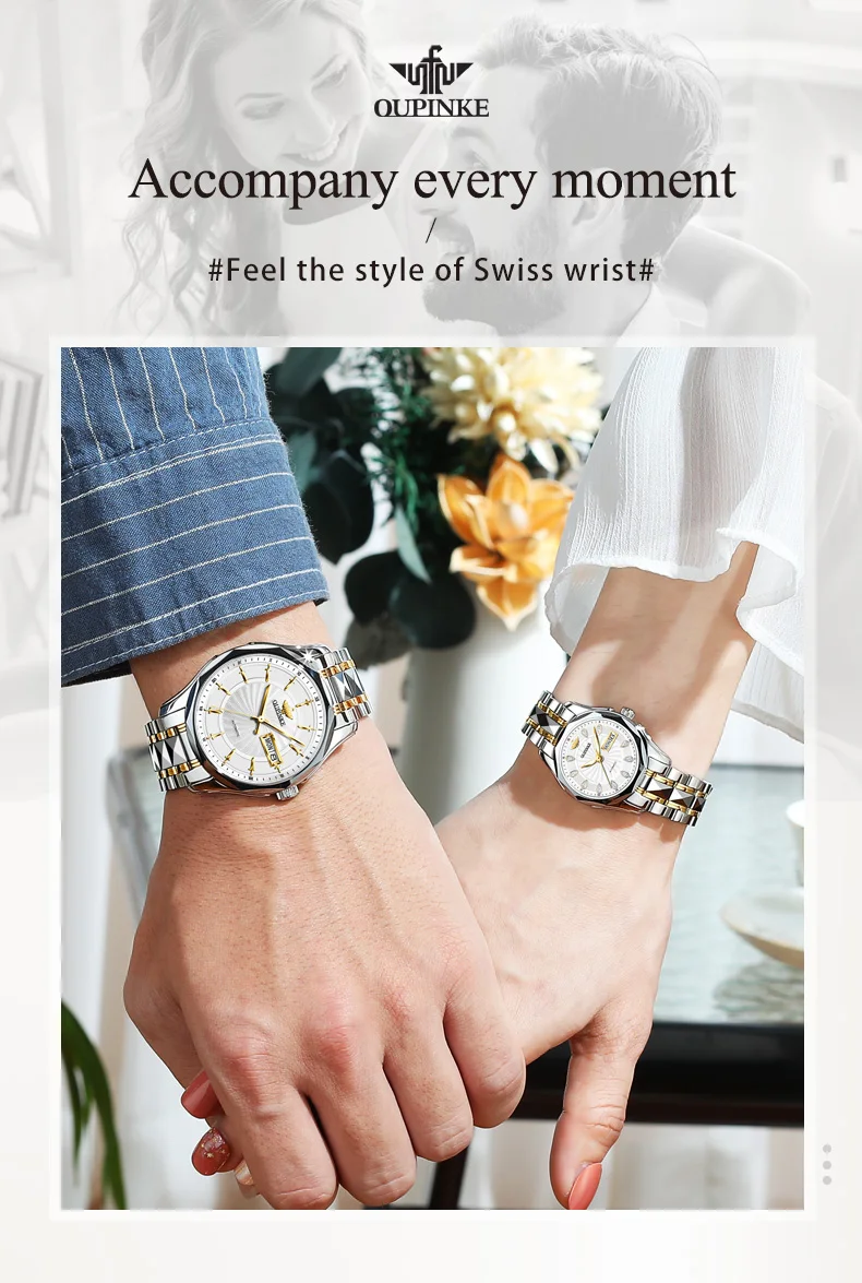 Oupinke 3172 Schweizer Cerfiticate Marke Paar Uhr für Männer Frauen automatische mechanische Handuhr Dual Kalender Luxus uhren