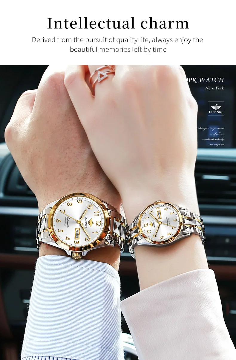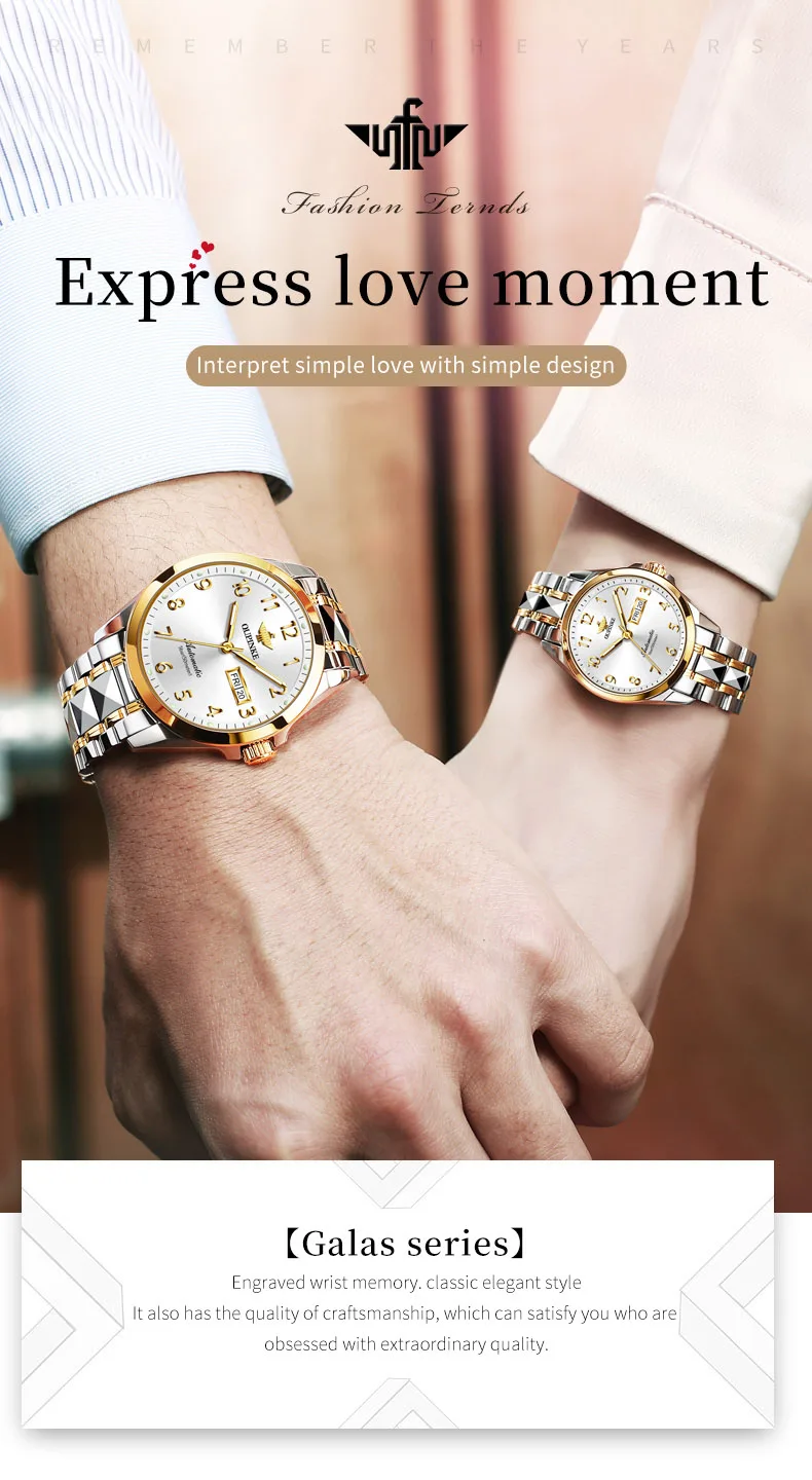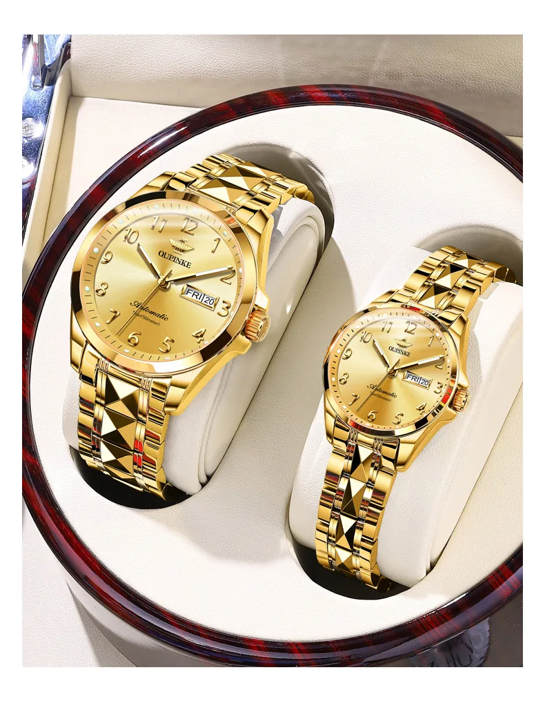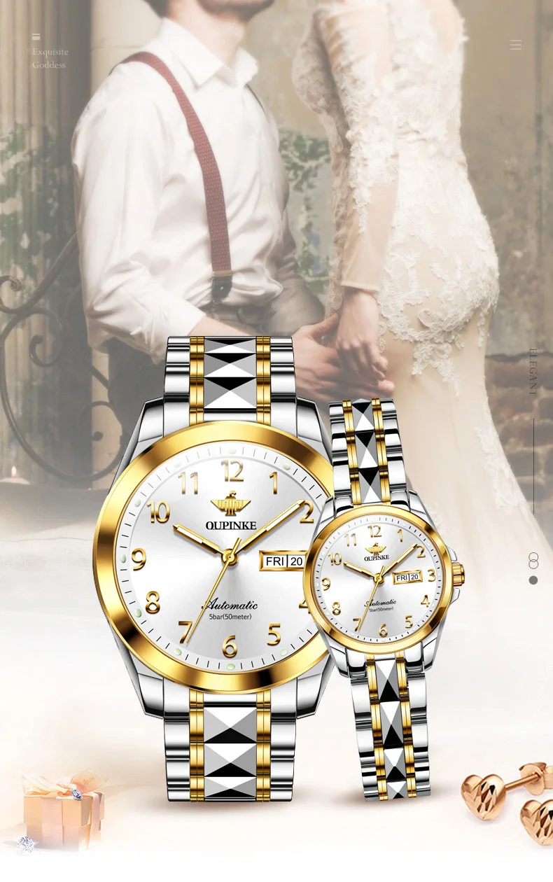 Oupinke 3228 Original Paar Uhr Set für Männer Frauen Digital Zifferblatt Business Armbanduhren Wolfram Stahl armband automatische Handuhr
