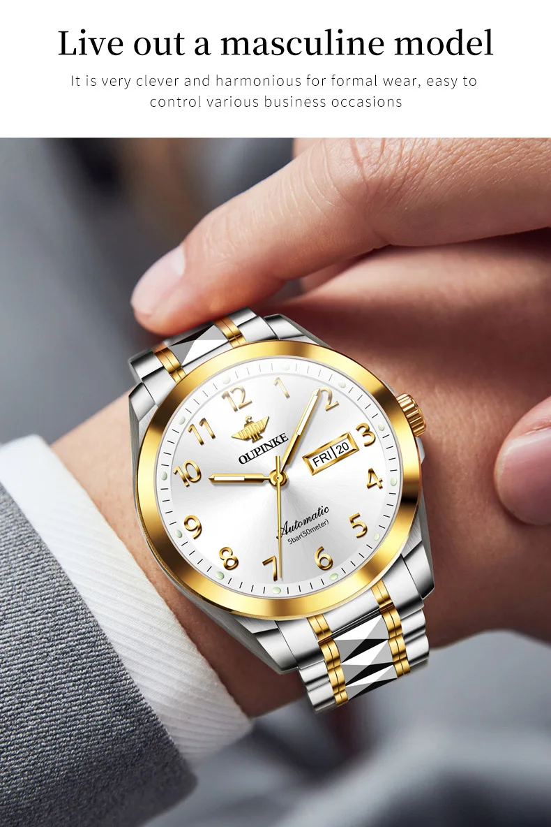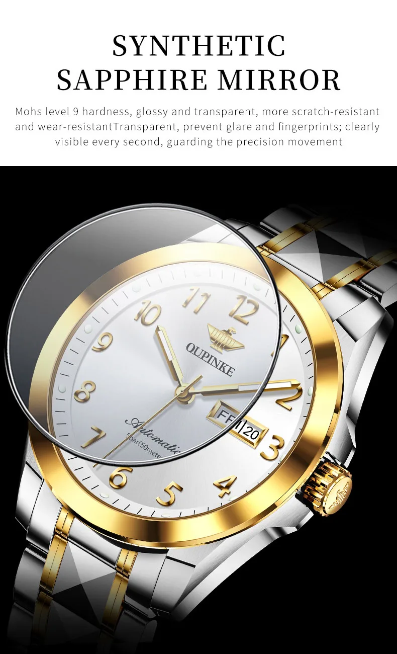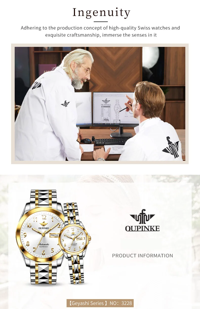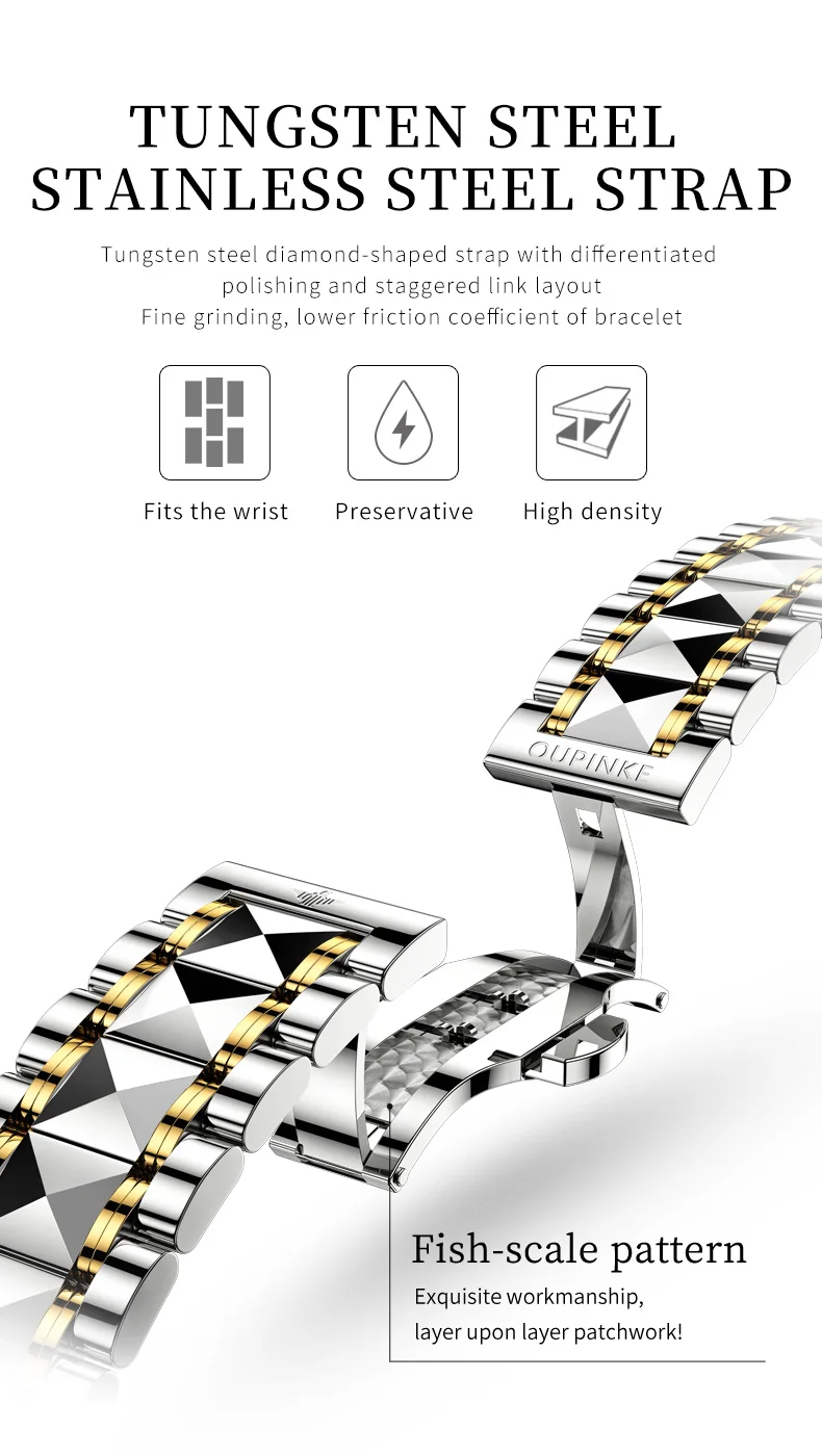Oupinke 3228 Luxus mechanische Paar Uhr für Männer Frauen Nummer Zifferblatt automatische Armbanduhren Wolfram Stahl armband Handuhr