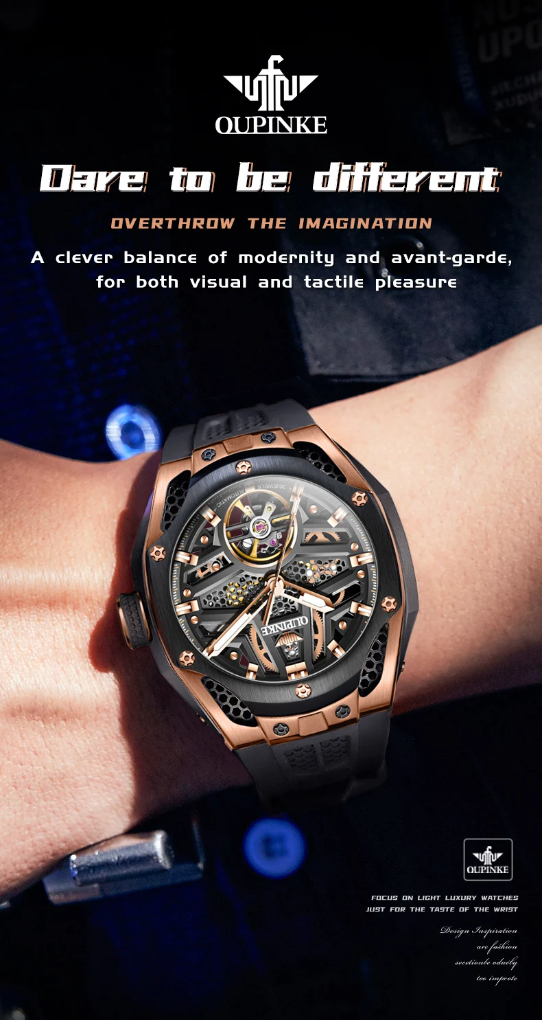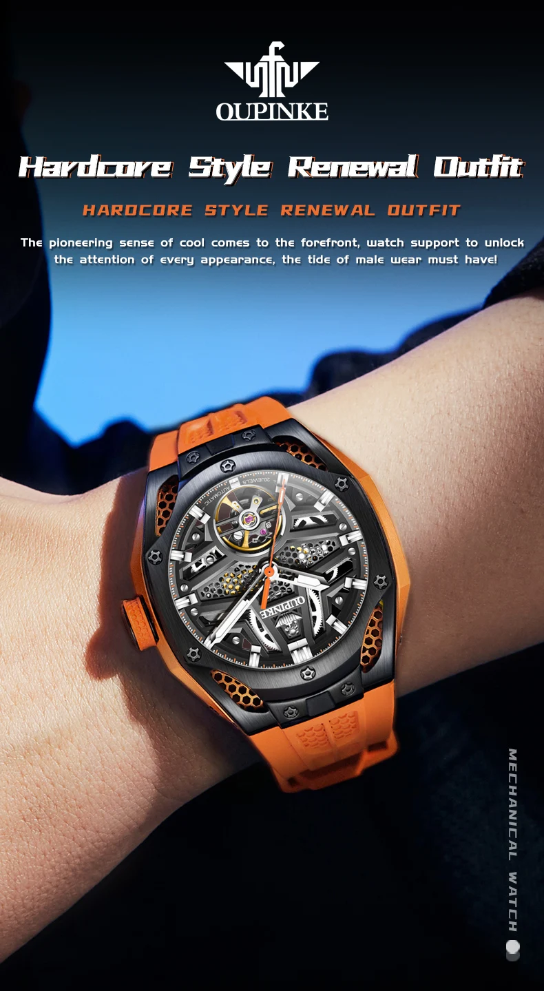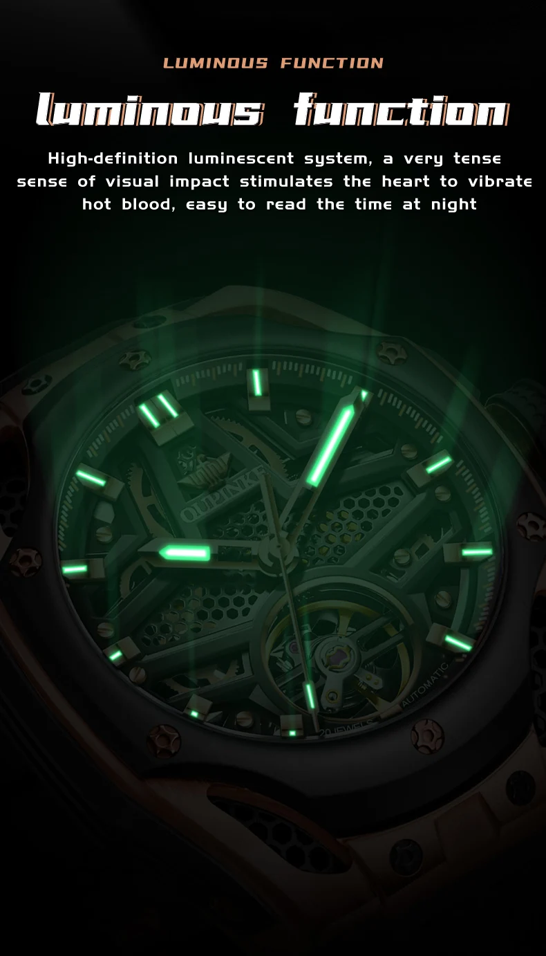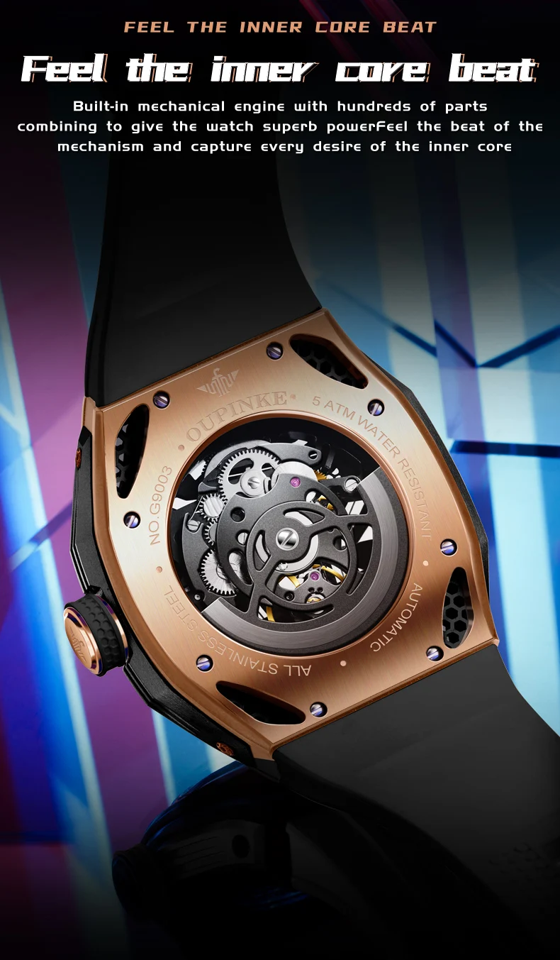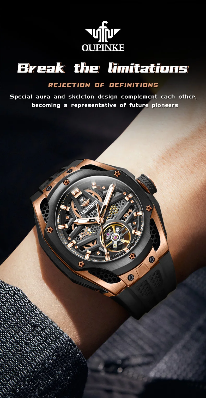 OUPINKE 9003Herrenuhr Original Mode Automatische Mechanische Uhr Aushöhlung Bewegung Wasserdicht Leuchtende Uhren Luxus Männer