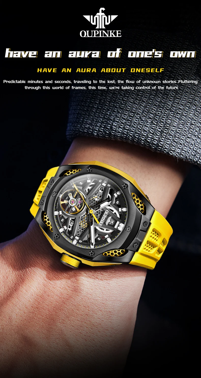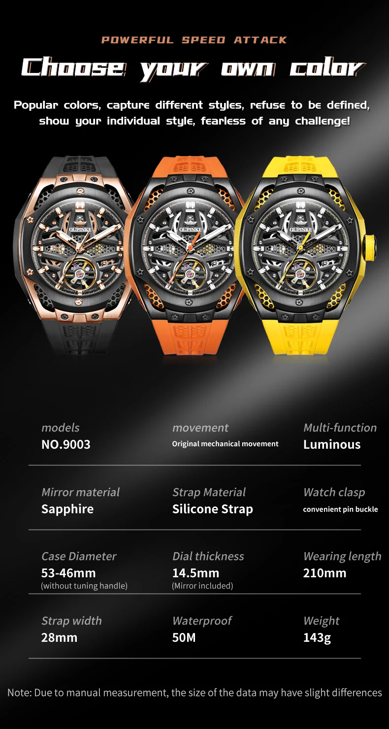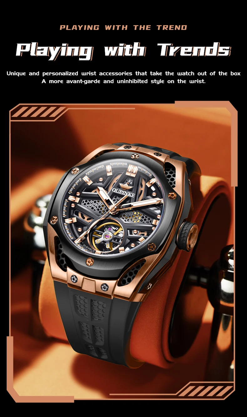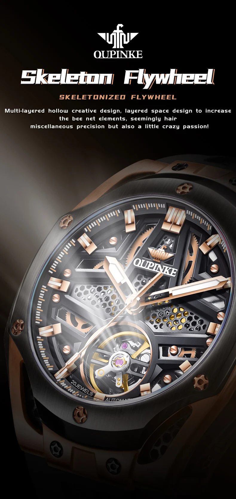 OUPINKE 9003Herrenuhr Original Mode Automatische Mechanische Uhr Aushöhlung Bewegung Wasserdicht Leuchtende Uhren Luxus Männer