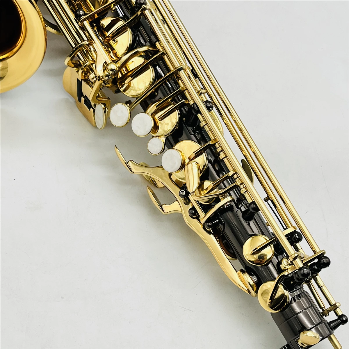 Real Pictures 875EX Altsaxophon Eb Tuner Schwarz vernickelt Gold geschnitzter Körper Professioneller Holzblasinstrument mit Kofferzubehör