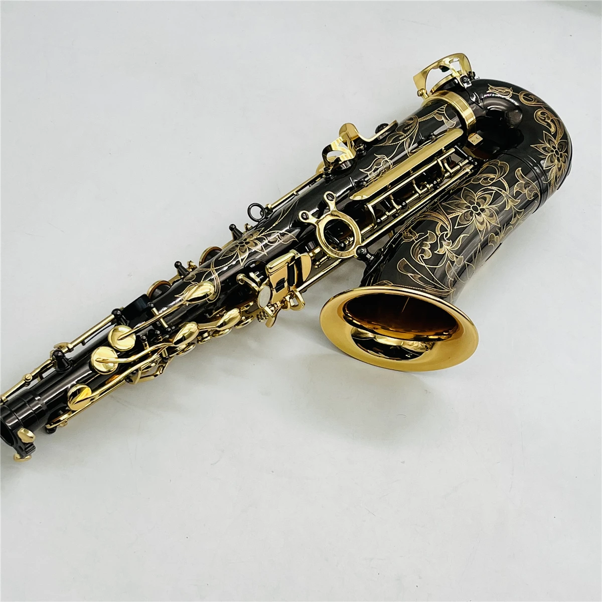 Echte Bilder 875EX Altsaxophon Eb Tuner Schwarz Vernickelt Gold Geschnitzter Körper Professioneller Holzwind Mit Koffer Zubehör