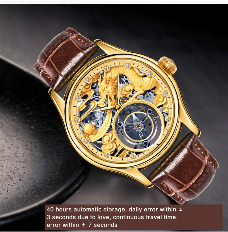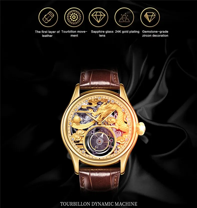 Item: Chinese Zodiac Dragon Skeleton Tourbillon Mechanical Watches