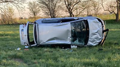 Plötzlich hebt der Wagen ab und überschlägt sich!