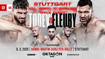 Am 8. März knallt es wieder! Zwei Wochen nach dem Spektakel im tschechischen Třinec steigt in Stuttgart das nächste MMA-Event. Dieses Mal kommt es zum Aufeinandertreffen von Will Fleury und Lazar Todev. Zusätzlich kehrt Daniel Schwindt in den Käfig zurück – neben ihm kämpft eine ganze Reihe weiterer Deutsche um den Sieg – das nächste MMA-Feuerwerk steht bevor. Alle Infos zur Live-Übertragung von Oktagon 68 im Stream auf RTL+ gibt’s hier.